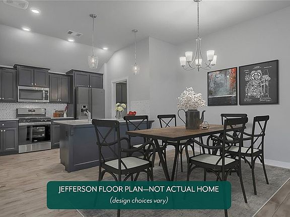 Save up to $500/mo with new LOWER INTEREST RATES for a limited time only! This 4 bedroom home features a split floorplan and large central living area with luxury vinyl plank flooring and a fireplace. The kitchen includes quartz countertops and a gas range. You will love the secondary bath that is compartmentalized with a shower and toilet in one section, and split vanities in the other to maximize privacy and efficiency. Additional garage storage space, as well as a covered back patio are also included. Residents of the Greenleaf Trails enjoy parks and playgrounds, one mile of the 13-mile Legacy Trails, a splashpad, ponds, and sports fields. Included features: * Two-year home warranty * 10-year structural warranty * Guaranteed heating and cooling costs * Floorplan may differ slightly from completed home.