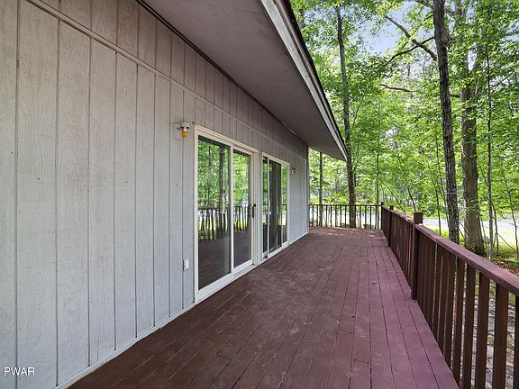 Welcome to this charming 3-bedroom, 2-bathroom home located on a spacious corner lot in the amenity- filled community of Saw Creek Estates. This inviting home features fresh interior paint, brand-new carpeting, recessed lighting and newly installed hardwood floors, along with updated interior stairs. The bathrooms have been refreshed with new vanities, while retaining their original tubs and tile flooring.The open-concept living area offers a warm and comfortable space, complete with a wood-burning fireplace--perfect for cozy evenings. A versatile bonus room provides additional space for a home office, playroom, or guest room. Step outside to a freshly painted deck, ideal for relaxing or entertaining in a peaceful, wooded setting.Saw Creek Estates offers a resort-style lifestyle with year-round amenities including lake and beach access, indoor and outdoor pools, tennis and basketball courts (both indoor and outdoor), a ski slope, playground, dog park, clubhouse, fitness center, and the popular Top of the World Restaurant.Whether you're looking for a weekend escape or a full-time residence, this well-maintained home is a fantastic opportunity to enjoy all the Poconos has to offer.