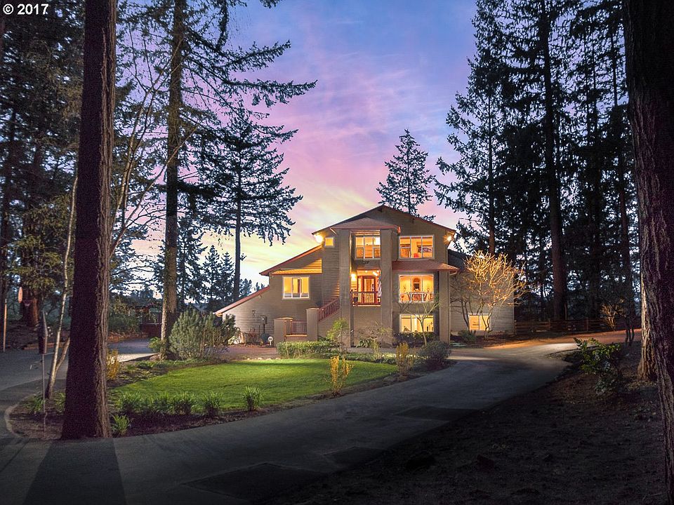 Beautifully updated custom home with amazing panoramic Willamette River views & stunning sunsets. Open flowing floor plan & large deck with pool makes this home an entertainer's dream. Owner's master suite upstairs with 2nd ensuite on main floor. Dedicated boat dock, 420 SF covered boat storage. Park-like setting on quiet, private road. Community tennis court, clubhouse & play structure.