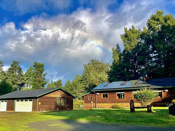 Follow the extended driveway to a parking area surrounded by pink quartz and you have arrived at the Dutcher property. The 2.43 +/- gently sloping acres reveals a homestead that includes a charming 2 bedroom/1 bath + office/den home complete with diffused skylights, granite kitchen counters, pantry/mudroom and cozy woodstove. For your guests, there is a detached 'bunkhouse' and bathroom that emulates the ranch-style of the property. Other amazing features include a recently built, heated 3 car garage, hoop-style greenhouse, and multiple storage buildings. The gardens have amazing landscaped flowers, several fruit bearing trees, a small meditation pond, romantic swinging chair and a south facing sun deck. Everywhere, there are bursts of color and fragrance. Best of all, the property has an owned solar system which keeps the electric cost to a bare minimum. Every detail has been thoughtfully included for a quality of country living that feels like 'home'; there is even a dog-washing station and also a fish-cleaning station. 2 RV sites with hook-ups. Property is all fenced except for the entrance. After an exciting day of hiking on nearby trails, shopping in downtown Fort Bragg and dining at an ocean view restaurant, you can come home to relax in your private, bubbling outdoor hot tub and appreciate the sweeping views of the natural world outside. Don't miss the opportunity to experience this storybook property.