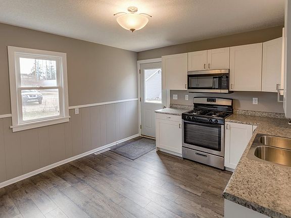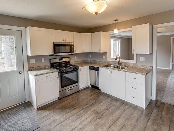 Adorable remodeled home on a gorgeous lot. NEW: bathroom, deck, kitchen, windows, doors, appliances, flooring, lighting fixtures and paint everywhere. Garage is insulated and has new roof, siding, and is structurally sound now. The yard is incredible with apple trees, raspberry bushes, tall pines, strawberries, vines, rhubarb, lilacs, hydrangeas, and many perennials. Full basement for expansion or storage.