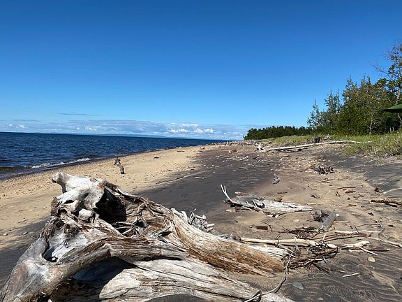 Ready to escape and enjoy sunsets on Lake Superior? This special property combines acreage and lake frontage for a one-of-kind, off-grid getaway. Spectacular 729' of wide-beach frontage west of Whitefish Point totals 12+ acres. Seasonal access on Wildcat Rd, but not too far to access via snowshoe in the winter. The beach is strewn with agates, polished beach stones and driftwood. Walk for miles and not see another soul! The custom-built white cedar log cabin sits just off the lakefront to protect from the rugged winds of Lake Superior, but close enough to always hear the waves. Cabin has a 4-block crawl, metal roof, wood floor and a screened porch. Wood stove, picnic tables, grill and some furnishings inclusive. No well or septic; outhouse with finished interior. Shown by appointment.