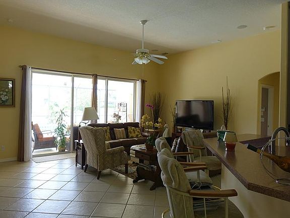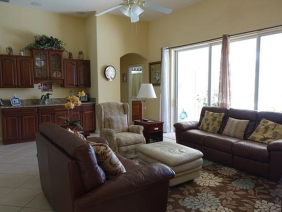 Beautiful, well kept, 3 bedroom, 2 bath, plus pool home in the wonderful community of Highland Ridge. The home is light and bright with an open floor plan. Fantastic 12 ft. vaulted ceilings, central vac, built in speakers, security, newer stainless steel appliances, dry bar in family room. Extended screened lanai with salt water pool that has newer solar panels and heat pump overlooking water with a great view and a variety of wildlife. Stylish archways adorn the foyer, living room/dining room and throughout the home. The kitchen features solid oak cabinetry, and a breakfast bar. The open kitchen overlooks the great room with triple sliders out to the covered patio and pool that overlooks the water. Spacious master suite has trey ceilings and opens to master bath with dual sinks, separate shower and garden tub. Large walk in closet. Master leads to the lanai and pool. The home is split bedroom plan with main living areas featuring 16x16 tile on the diagonal. New carpet in the bedrooms, new wood laminate in formal living/dining room and office/den. Florida friendly landscaping with some fruit trees and palms. Convenient central location to shopping, restaurants and gulf beaches. Low HOA fee and no CDD. This is home sweet home.