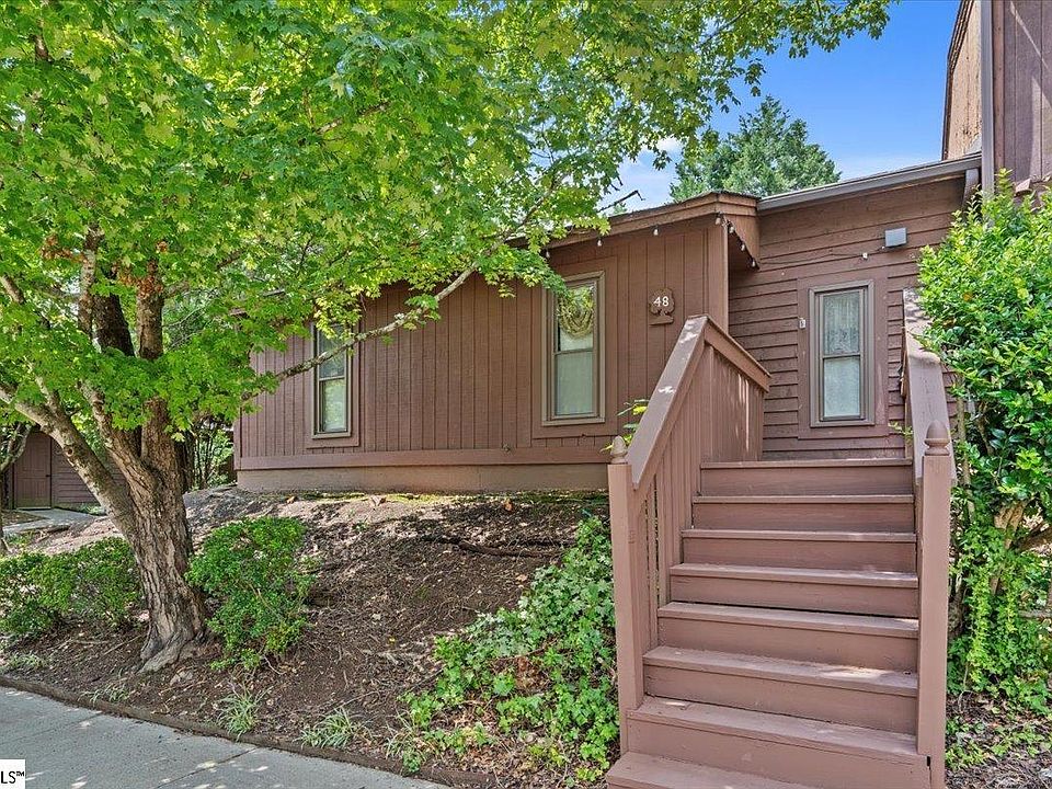 Great location in Simpsonville! With newly finished engineered hardwood floors , laminate floors, an upgraded kitchen, newly installed rugs, and fresh paint on all walls, this beautiful 2bedroom, 2 full bath end-unit condo offers stunning features. Enjoy a deck and screened-in porch overlooking the 6th green at Holly Tree Golf Course. The back entrance features a landscaped garden with iron railing and brick stairs. The interior entrance hall leads to a spacious living and dining room adorned with hardwood floors and crown molding. The eat-in kitchen (EIK) includes all appliances, with a nearly new dishwasher. All windows are Taylor brand thermal. The third bedroom has been converted into a cozy TV/family room with a wood-burning fireplace. Come see it before it’s gone!