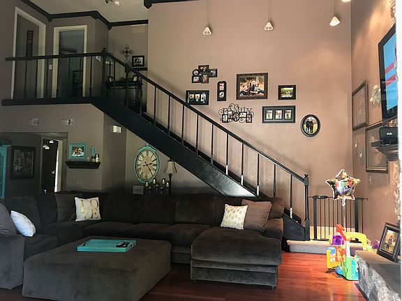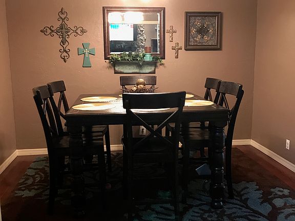 3 bed, 1 large extra room, 1 full master bath downstairs, 1 full jack and Jill bath upstairs, rock gas fireplace, new carpet on stairs and upstairs, hardwood and tile flooring downstairs, large living room, covered back patio, low maintenance lawn w/ sprinkler system, outdoor lighting has been updated to downlighting