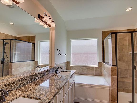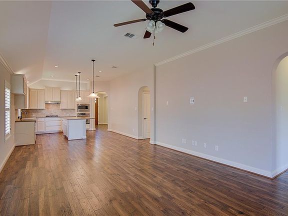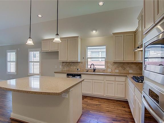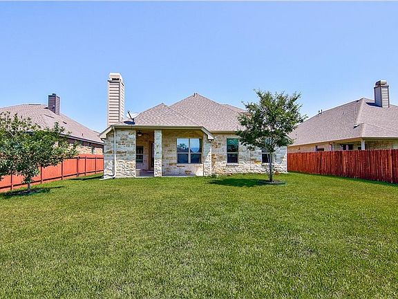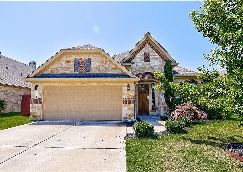 Built in 2013, this Cedar Park two-story home offers hardwood flooring, stainless steel appliances, Corian kitchen countertops, a tankless water heater, a covered back patio with a built-in fireplace, and a two-car garage.