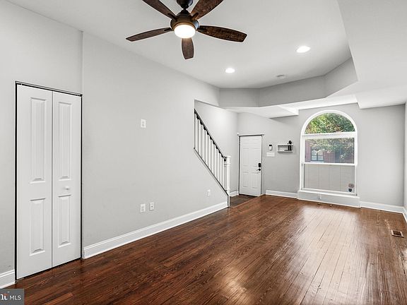 Located near Patterson Park, this spacious 4-bedroom townhome blends historic character with modern updates. The main level showcases original hardwood floors, a charming kitchen with open shelving, granite countertops, a gas range with microwave range hood, and a convenient full bath. Upstairs, you'll find two bedrooms, including an owner's suite with double closets and a private ensuite, plus an additional full hall bath. The finished lower level offers a full bath and two versatile rooms—perfect for bedrooms, a home office, or media space. Enjoy the vibrant neighborhood with Highlandtown Arts District, Greektown's Yard 56, and Canton Square just blocks away. Rear parking adds to the convenience of this well-appointed home. Mortgage savings may be available for buyers of this listing.