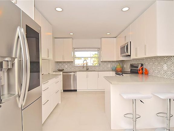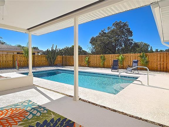 Back on market - Buyer's financing fell through! Another distinctive renovation by the highly regarded team at Sarasota Modern Revival, LLC. Light and bright pool home in Sarasota's coveted and ultra-convenient South Gate neighborhood. Substantial, stylish renovation with attention to details. All brand new: paver driveway, walkway and front porch; porcelain tile flooring and baseboards consistent throughout; kitchen with quartz counters, upper tier stainless appliances, soft close doors/drawers, tile backsplash; new spa-like baths; resurfaced quartz pool; resurfaced pool deck and covered patio; privacy fenced backyard; front entry door; interior door hardware; wind rated garage door; interior and exterior paint; all lighting/ceiling fans; upgraded 200amp electrical panel with whole-house surge suppressor; receptacles and switches. This home checks so many boxes: master suite with en-suite bath and large walk-in closet; laundry room; eat-in kitchen; sliders to covered porch and pool from kitchen and master bedroom; 2-car garage; large privacy fenced yard. All in one of Sarasota's favorite mid-century neighborhoods close to all of Sarasota... downtown, beaches, shopping, restaurants, museums.