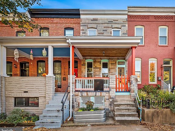 Welcome to 3106 Keswick, a delightful Hampden home that perfectly blends charm, character, and potential! This home proudly showcases Baltimore's classic formstone exterior, adorned with vibrant colors that capture the essence of this beloved city neighborhood. Start your mornings on the spacious front porch, the perfect spot for enjoying your coffee while exchanging friendly hellos with neighbors. As you enter, the main level greets you with separate dining and living areas, showcasing hardwood floors and modern light fixtures. The kitchen features updated appliances and offers ample space for a breakfast table or even an expansion for your dream renovation. The fun primary-colored floor tiles (a la Molly Baz) bring a touch of personality to the space. A convenient half bath on the main floor adds to the home's practicality. Positioned perfectly, the home is bathed in morning light at the front, creating a warm atmosphere, while the afternoon glow fills the back. Upstairs, you’ll find three bedrooms, each offering comfort and space. The bathroom features a luxurious jacuzzi tub, ideal for unwinding after a long day. A washer and dryer, located in the upper floor bathroom, ensuring practicality and ease of living. The basement provides additional storage space. Step outside to back, where you'll find a versatile space perfect for al fresco dining or cultivating your own raised bed garden oasis. Recent upgrades include fridge (2024), hot water heater (2023), roof (2021), oven (2021), washer + dryer (2021), and a newer KitchenAid dishwasher, ensuring modern convenience and peace of mind, along with fresh paint throughout the home. Nestled in a prime location, you’re just a short stroll from some of Baltimore's best restaurants and Wyman Park’s trails and playground. With easy access to I-83, commuting is a breeze. Seize the chance for a great investment in one of Baltimore’s most sought-after neighborhoods!