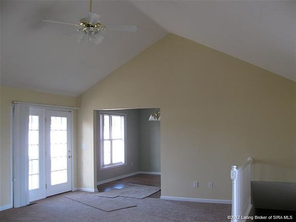 Spacious home with new carpet, laminate flooring and much more. Vaulted ceiling in great room. Custom Hunter Douglas blinds throughout. Cooking will be easy in this functional kitchen featuring lots of cabinets, pantry, breakfast/snack bar, dishwasher, range/oven, microwave and laminate flooring for easy cleaning. 1st floor laundry room conveniently located off kitchen. Master bedroom has tray ceiling, private bath, stay organized with walk in closet with built-in drawers and shelves. Open staircase to finished basement with huge family/recreation room, additional finished room would make great office, playroom or 4th bedroom. Full bath and unfinished storage area. Whether entertaining in your family room or outdoors, you will love all the space. Patio and privacy fenced yard, great formula for a BBQ and games. Ready for immediate occupancy\n\nInformation Deemed Reliable But Not Guaranteed. Information provided by the Southern Indiana REALTORS® Association, Inc. © 2010 SIRA Multiple Listing Service. All rights reserved. Brokered And Advertised By: RE/MAX ONE Listing Agent: Gene Baxter