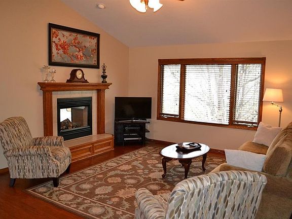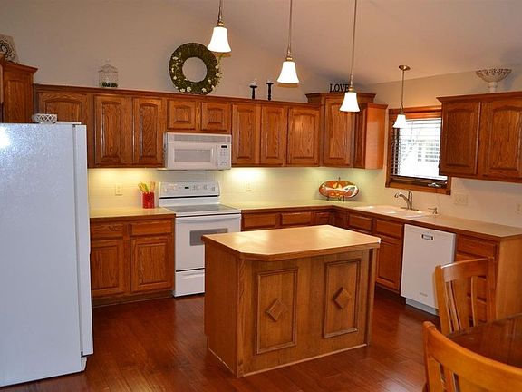 Fantastic ranch on a cul-de-sac in Ridge Port a waterski/jetski community! Six panel entry door with sidelight, open rail U-shaped stairway with window and wood floor! Super living room with see-thru gas fireplace with wood and tile face including fluted wood columns, picture windows, vaulted ceiling with plant shelf and wood floor! Sharp island kitchen with stagger solid wood cabinetry, two lazy susans, high vaulted ceiling, full appliances and wood floor! Open dining area to the kitchen with see-thru gas fireplace with wood and tile face including fluted columns and built-ins beside fireplace, patio doors to deck, vaulted ceiling, can lighting and wood floor! Separate (not a walkthrough) laundry room with pantry, cabinetry, shelf and hanging rod and window! Huge master bedroom with triple windows, vaulted ceiling and large walk-in closet with sweater rack plus a master bath with double vanity, Jacuzzi tub with glass block window above and separate shower! Bedroom 2 with double window with roundtop transom and ceiling fan! Bedroom 3 with large closet and ceiling fan! Hall bath with large vanity with decora mirror and tile floor! Huge basement family room with three large viewout windows and a sharp wet bar with can lighting and frig space! Large basement bath with tub/shower and 4'' vanity! Huge basement bedroom with viewout windows and walk-in closet! Fantastic backyard with a large composite deck with wrought iron railing, new patio, sprinkler system, irrigation well and fabulous landscaping! Great three car garage with opener, insulation, and walkthrough door to yard! Super HOA amenities including pool, playground and a waterskiing lake with beaches!