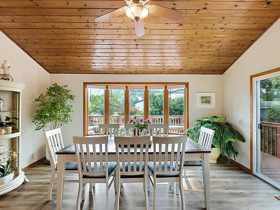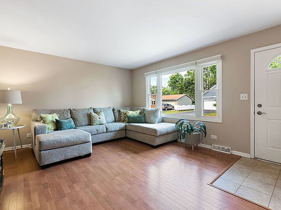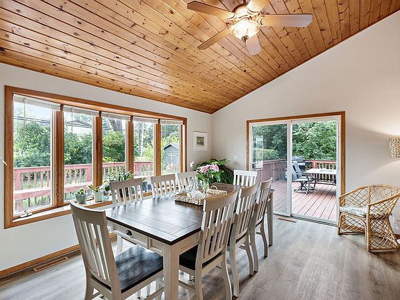 You will PINE for this freshly painted PINE TERRACE ranch on double lot in McHenry schools! Natural light pours through every window from the 17' living room to the 16' sunroom/family room. Hardwood floors and triple window with custom blinds in living room. 22' kitchen with 42" Shaker cabinetry, stone finish tile backsplash, solid surface counters, under-cabinet lighting, and Kitchen Aid appliances opens to sunroom/family room addition with vaulted knotty pine ceiling, brand-new LVT wood plank flooring, lighted ceiling fan, and doors to deck and private yard. Expanded primary suite with vaulted ceiling, skylights, huge walk-in closet, and private bath with heated floor, two vanities, makeup station, wood plank ceiling, and tub/shower with privacy glass doors. Generous bedrooms 2 & 3 with big windows and closets. Updated hall bath with Shaker style vanity and framed mirror, white commode, and oversized shower with privacy glass enclosure. The finished basement provides another family room, open bedroom, full bath, and laundry center with sliding barn door, Maytag washer & dryer, and utility sink plus storage galore. Drywalled ceiling with recessed lights, built-ins and the above grade window keep it light and bright. Huge deck overlooks lush grounds with koi pond, gardens, strawberries, natural grasses, river rock edged beds, and matching storage shed. Attached heated two-car garage with epoxy finish floor boasts plenty of shelves and pull-down stairs to full attic. York furnace with Aprilaire humidifier. 75-gallon water heater. Concrete crawl. Water main and line to house were completely replaced in late 2022. Two blocks from lake. Minutes to parks, shopping, restaurants, and access roads.