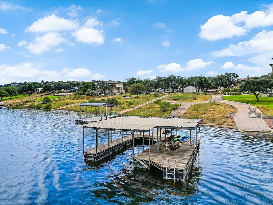 *MULTI GENERATIONAL ESTATE!* Welcome to a dream Lake Travis retreat! Perfectly positioned deep water, this incredible property blends functionality and flexibility across two distinct structures—making it ideal for multigenerational living, entertaining, or short-term rental income. The main residence offers approximately 3,573 square feet of thoughtfully designed living space, featuring 5 spacious bedrooms, 3 full bathrooms, and an attached 2-car garage. The open-concept floor plan has natural light and sweeping views of the lake and Hill Country into the living areas and primary bedrooms. Step out onto multiple decks and take in the scenery or relax in your private pool and hot tub after a day on the water. Enjoy a short stroll to your FLOATING private boat dock ready for lake adventures in deep, reliable water year-round. The second structure is an oversized detached garage with 4 stalls (including one that’s over 40 feet deep—perfect for boats, trailers, or RVs). This garage features 50-amp service and a 1-ton push trolley on a 12” steel I-beam, making it a dream setup for hobbyists or those needing serious storage and workspace. Above the garage is a professionally finished 1,200-square-foot guest quarters, complete with 2 bedrooms, 2 bathrooms, kitchen, and living area—all recently renovated with beautiful, modern farmhouse finishes. This versatile space is ideal for guests, in-laws, or as a short-term rental opportunity. Located in the heart of Lago Vista, a golf cart-friendly community known for its coveted lakeside lifestyle, excellent schools, and easy access to Austin’s Hill Country charm—this property makes every day feel like a vacation. Whether you're looking for a full-time residence, a luxurious getaway, or an income-generating investment, this home offers it all. Buyer's agent to verify all information.