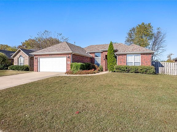 This exceptional all-brick home offers style, functionality, and an unbeatable location only 10 minutes from the Downtown Bentonville Square. Featuring granite kitchen countertops, plentiful cabinetry, and thoughtful storage throughout. Each additional bedroom features two closets, while the primary suite provides comfort and privacy in this split floor plan. Throughout the home, LVP and tile flooring add a touch of refinement and durability. Outside, a spacious brick patio creates an inviting space for relaxing or entertaining, and built-in garage storage adds everyday convenience. Close to shopping, dining, and local amenities, this home blends quality construction with everyday comfort in one of Northwest Arkansas’ most sought-after locations.