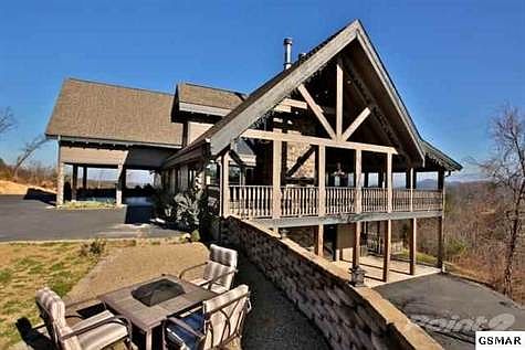 Experience the Smokey Mountain Dream. Wake up to breathtaking views of Mt. LeConte. Entertain friends and family in luxury. Custom 5 BR, 4 BA, 3.5 half BA, 7287 sq. ft. Cypress log home on 2.37 acre private estate in prestigious Summit community. Electronic, gated, stone entrance. 2 full kitchens w/ solid wood cabinets, granite countertops. Fully equiped 12 seat threatre/media room w/ 11X6.5 screen, 2 game rooms. Spacious office overlooking Greatroom w/ wall of glass & amazing views. Private wine tasting room. Tanning room, exercise room w/ amazing views of English Mtn. & Pigeon Forge. Relax in luxury in the Master Bath w/ jac. tub, gas log FP, 3 chandeliers while you watch TV. On demand hot water, on demand generator, 11 Fireplaces (5 massive stone wood burning, 6 gas log FP). Exposed Douglas Fir Beam Ceilings w/ solid Cherry T&G ceilings on main floor & loft. Western knotty Alder wainscoting and trim on upper levels. Lower level walls, upper level exterior wall & roof supporting .solid cypress logs. 3,000 sq. ft. of covered decks w/ incredible views.