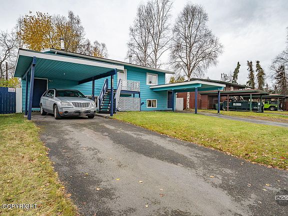Great West Anchorage duplex with easy access to airport, lake hood, restaurants, trails and more. 2 bedroom/1 bathroom in each unit. Owner's unit is upstairs with sliding door access to a large deck. Yard is fully fenced. Laminate floors, storage unit and carport for each unit. W/D upstairs, W down Recent exterior paint. Downstairs unit has walk-in shower. Both unit painted inside sept 2023