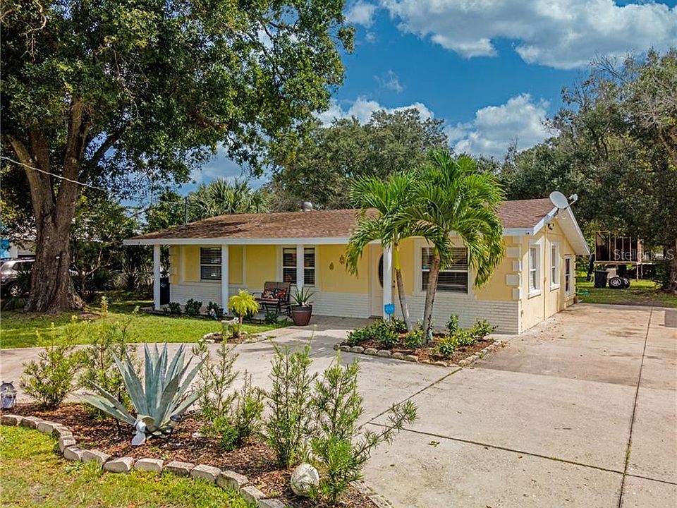Welcome to this inviting home on a large double lot with no restrictions. This home has a lovely open floorplan with a kitchen and dining room area that connects to the living room, and offers additional seating at the breakfast bar. The kitchen has granite countertops and stainless steel appliances. There are 3 bedrooms and a bonus room plus two full baths, as well as tons of outdoor living and patio space. Do you need more parking? This home offers a large circular driveway plus additional drive ways with parking for multiple vehicles. The bonus room behind the kitchen leading to the 3rd bedroom is currently being used as a 4th bedroom and could be a family room or den. The .30 acre lot is spacious and is located next to the Oasis Community Center. Location is convenient for access to 301 and Bradenton/Sarasota. Make your appointment today!