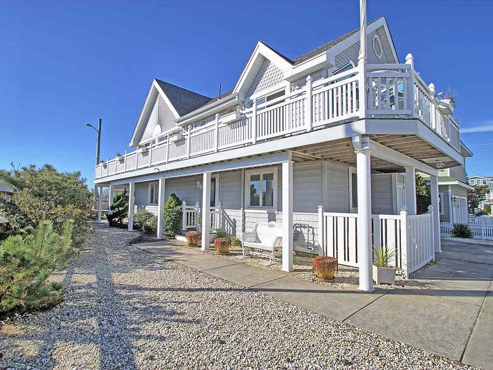 OCEANFRONT with 110 feet of ocean frontage on the east side and 55 feet of ocean frontage on the southside. Spectacular white water views as well as gorgeous coastline views rarely found in an oceanfront home. Wonderfully maintained, two story upside down style home offering five bedrooms and three baths. First floor has a bright entrance foyer, large family room, three bedrooms, hall bath and laundry. The second floor features a vaulted great room with fireplace, spacious kitchen with counter bar, bedroom, hall bath and a master bedroom with ensuite bath. The second floor deck wraps around the east side of the home allowing plenty of entertaining space as well as an opportunity to enjoy a fabulous sunset. The home faces into the prevailing south breezes allowing you plenty of days without air conditioning. The home is in excellent condition and would allow a 4600 square foot home to be built. Other amenities include maintenance free vinyl shake siding, vinyl rails, ample storage, plenty of off street parking and an outside shower. The home is sold tastefully furnished and is easy to show.