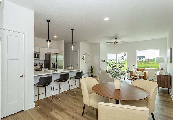 Two-story townhome with 3 Bedrooms, a loft area, 2.5 Bathrooms, and a 2-car OVERSIZED GARAGE. As you enter you are greeted by an open and spacious floor plan, with the main floor boasting 9 ft ceilings and LVP flooring throughout. Enjoy large windows and lots of natural light. The Kitchen is a highlight offering & Large PANTRY, Island, and Beautiful Quartz Countertops. Stainless Steel appliances (including a Refrigerator. The main floor also includes a convenient half bathroom. On the upper level, you'll find 3 large bedrooms. The Primary Bedroom features a walk-in closet and an ensuite bathroom. Additionally, there is a full bathroom, a laundry area with a WASHER and DRYER included, and a LOFT area that can be utilized as an office or flexible space. Leave the irrigation, lawn care, and snow removal to us. Located within minutes of Western Suburbs. Contact us to schedule a showing.
