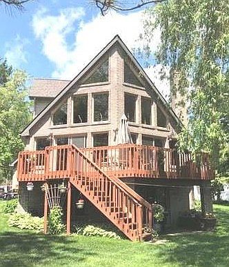 Spectacular lakefront home on all all sports Surrey Lake, Custom offering 130' frontage on the lake with seawall, this brick home offers large great room with open living/dining/kitchen with large windows to enjoy the views of the water, wood burning/gas fireplace, large deck at lakeside of home for outdoor entertaining, 2 bedrooms/loft and shower bath on upper level, L-shape family room in lower level with walkout towards lakeside with wood burning fireplace, this family room is ideal for large gatherings, storage room with washer/dryer, furnace, hot water heater, 1/2 bath; level lot at lakeside, underground sprinkler system, Generac generator, attached 1.5 car garage with large storage room above, being offered with all basic furniture, plus two high end kayaks, make your appointment today!! #6966