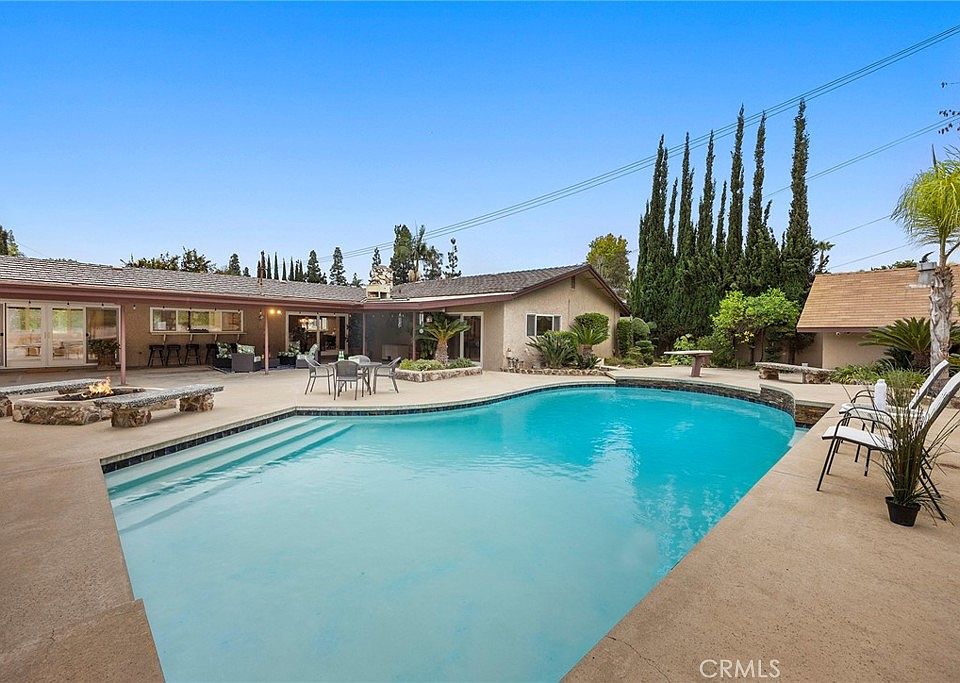 One of a kind SINGLE-STORY POOL home with potential POOLHOUSE /ADU possibility, nestled in a quiet CUL-DE-SAC in the prestigious Sunny Ranch neighborhood. Oversized great room with vaulted ceilings, custom built-ins and wet bar perfect for hosting/entertaining, opening out to a wonderfully private backyard with sparkling pool and cozy firepit for a peaceful retreat. Spend balmy evenings dining al fresco under extra wide covered patio with built-in BBQ station and multiple seating areas, making a true entertainer's dream. This charming home presenting a delightful curb appeal boasting a sweeping driveway plus an exceptionally magnificent garage for parking up to 8-cars, boats or RV parking, already equipped with half bath, sink and water heater, is ready for your imagination to suit various lifestyles and ideas. Prime location nearby multitude of shopping and dining options, just moments away from Laguna lake, Fullerton loop (hiking, biking, equestrian) trails, golf courses and St. Jude hospital, zoned for award-winning Laguna Road Elementary, Parks Jr. High and Sunny Hills High School.