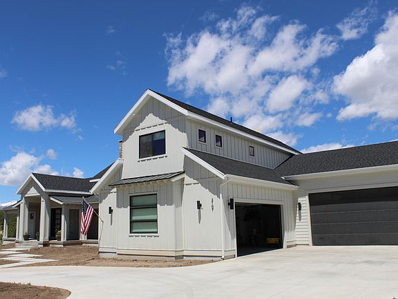 Amazing secluded south-facing modern farmhouse with horse property in exclusive Crossings at Lake Creek Development with pristine mountain and farm land views! Contemporary interior design features a custom floating staircase, custom fireplace and beautiful barn doors - not to mention the gourmet kitchen with professional range (equipped with sous vide, gas and induction), large large pantry, spacious mud room, massive cold storage, large laundry room, double dishwashers, and there is even a dog wash in the garage. This house has it all with speakers throughout the entire house, 7.1 Surround Sound in the basement and 3.1 Surround upstairs and in the master bedroom. The oversize 4 car garage fits the owner's boat so bring all your toys. The onsite RV Parking has a built in clean-out. Square footage per appraisal. Acreage per county records. Buyer/Buyer's Agent to verify all info.