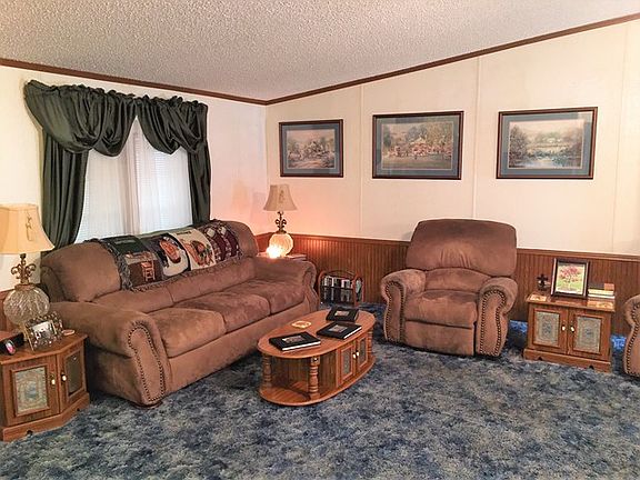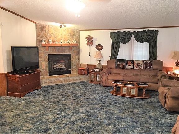 Beautiful 3/2 bath mobile home on concrete runners with log cabin feel with plenty to offer at a great price! Very spacious living room with gas log fireplace, huge island kitchen with 43 cabinets. Refrigerator remains with home. Large master bedroom and master bath. Outside you'll love the studio which could be a mother-in-law quarters or game room. Awesome covered deck connects the home to the studio and features an outdoor sink and countertop, perfect for the fishermen. Two storage buildings also remain with this beautiful property on over half an acre. Great location and price! Must see!!
