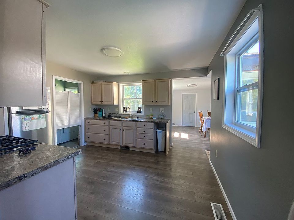 Move-in ready home just outside the city. Entire interior newly updated. Two large bedrooms with closets. Additional smaller room currently used as office/ mud room. Nice sized fenced in backyard with a small pond and shed. Attached garage. All newer appliances. Washer and dryer included, bought brand new last year. Would be the perfect starter home or rental property.