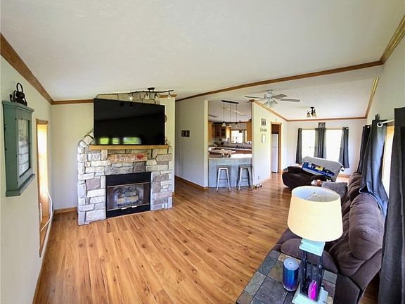 With 1863 square ft. of living space, this top-to-bottom remodeled home is not one to miss. This home features a three-dimensional roof, kitchen appliances, windows, 1000 gallon septic and two spacious decks, all new in 2022! With 3 bedrooms and 2 bathrooms sitting on a flat 1 acre lot, this home is only .25 miles from the elementary school, 15 minutes to Brandenburg, KY and 15 minutes to Corydon, IN. Upon entering the home, you will be greeted with a living space that opens to the dining room and follows you to the open kitchen with an abundance of cabinetry, eat-in kitchen and a bonus living room space! The main suite features a double sink vanity, stand-up shower and garden tub. There is access to the side deck from the kitchen that is approx. 12x27 and it's perfect for entertaining or those beautiful evenings with a sunset. The living room boasts a rock, gas-burning fireplace and natural sunlight throughout. You don't want to miss the chance to call this home!
