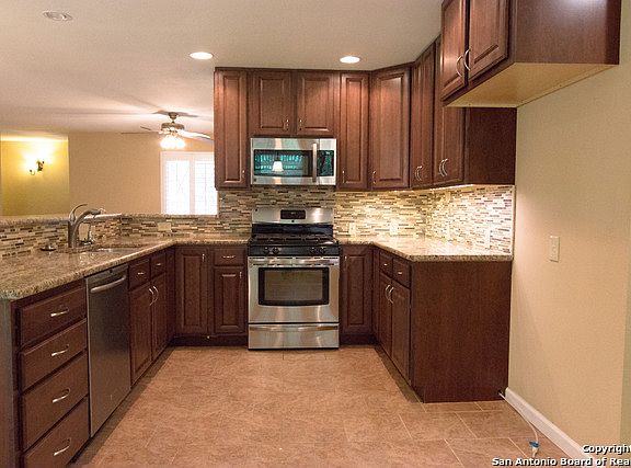 LOCATION, LOCATION, LOCATION! TASTEFULLY REMODELED HOME IN GREAT AREA! ALL WOOD AND TILE FLOORING, GRANITE COUNTERS, UPGRADE KT CABINETS AND APPLIANCES, COVERED PATIO, BACKS TO LARGE WOODED LOT HOME. SPRINKLER SYSTEM. CUSTOM PAINT. WATER SOFTENER. ONLY MINUTES FROM FT. SAM, THE AIRPORT, SHOPPING.