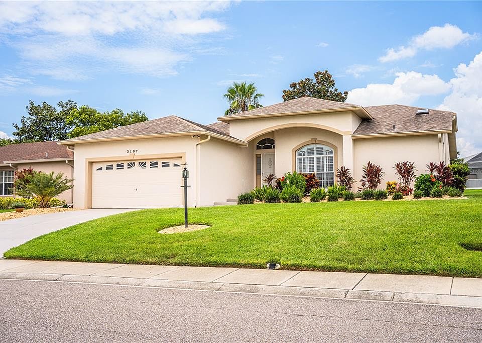 Located in the established golf community of Huntington Hills in Lakeland, this turn-key ready home is ready to impress. The home is in pristine condition inside and out. As you approach the property you will immediately notice the exceptional curb appeal with a beautiful lawn, well appointed landscaping/ garden with stone mulch, palm trees, and a recently painted driveway and walkway leading to the front entrance. As you enter the home you are greeted by the spacious great room with beautiful laminate flooring, high ceilings, large windows adorned with plantation shutters, and double doors leading to the enclosed lanai. The kitchen boasts granite countertops, new backsplash, all stainless-steel appliances, a window with shutters overlooking the backyard, and a door leading to the lanai. The primary bedroom has double doors opening to the patio and a dedicated bathroom that has been fully remodeled with new tile flooring, updated large walk-in tiled shower stall, new vanity, new toilet, walk-in closet and an additional built-in closet. The split bedroom plan appoints the 2nd bedroom with bamboo flooring on the opposite side of the home, and the 2nd bathroom, which has also been fully remodeled with new vanity, flooring, and tiles shower stall with glass door. The enclosed lanai is the perfect place for your morning coffee, an additional dining area, and entertaining. There is a ceiling fan, plenty of room for your patio furnishings, and additional space for items such as a grill or furnishings outside of the lanai on the concrete deck. Other great features include a newer HVAC system (Aug 2023), new dishwasher, plantation shutters throughout, a 2-car garage with door leading to the backyard, rain gutters, interior laundry room with built in cabinets (washer & dryer included with sale), exterior lighting, and much more! The roof was last replaced in 2015. Huntington Hills is a golf community, partially gated, with a challenging 18-hole golf course. Other amenities include a clubhouse/ rec center with a fully functioning restaurant/ bar, a heated community pool with spa, tennis & pickleball courts, access to Lake Lester with a dock, boat ramp, and picnic tables. If you are looking for the perfect Florida lifestyle, look no further! The home can be shown with ease, so make your appointment today!