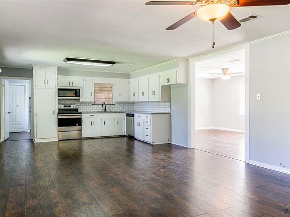 Exquisite, METICULOUSLY UPDATED family home located in the heart of Kilgore. Boasting 3 large bedrooms, 2 bathrooms, a 2 car garage with a work space,a new composition roof, new flooring and paint throughout, this home will appeal to all buyers! Equipped with brand new appliances, granite counter tops, subway tile back splash, 2 large living areas and a HUGE, landscaped backyard with a private, covered patio to enjoy quiet mornings. This one-of-a-kind home qualifies for 100% financing and is sure to go quickly so call now for your private showing!