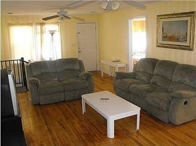 This is a former duplex which has been converted into a two story single family dwelling. The backyard is comprised of a pool and hot tub. It is well-furnished and recently renovated. It has two full kitchens upstairs and down and 12 beds - 4 king sized and 8 double beds. It can sleep up to 20 to 24 people as it also has two sleeper sofas. Less then 3 minutes to the beach..