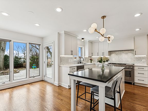This stunning colonial-style home blends timeless charm with modern luxury. Recently renovated and impeccably maintained, the home features a classic brick exterior and updated interiors with stylish finishes throughout. With four spacious bedrooms plus a dedicated office, this residence offers both comfort and functionality. The sleek, reimagined kitchen boasts crisp white cabinetry, striking black and white quartz countertops, a stylish backsplash, and updated appliances, including a new oven and range. The living space features parquet wood floors, rich green walls, built-in shelving, a wet bar closet and a cozy wood burning fireplace. In 2022, luxury vinyl plank flooring replaced the existing carpet on the second level, overhead lighting was added to every room, and all trim received a fresh update. The primary bathroom was completely transformed into a spa-like retreat with a luxurious walk-in steam shower, while the second full bathroom was also fully remodeled. A clever reconfiguration of the guest bedroom created a cozy upstairs office, and the entire home was repainted for a fresh, modern look. Additional 2022 updates include new hardwood flooring in the hallway, foyer, powder room, kitchen, and laundry room, as well as a new washer, dryer, and AC unit. In 2023, enhancements continued with new attic insulation, a full fireplace and chimney inspection and cleaning, brand-new windows on the first and second floors, and a beautiful new patio complete with a pergola-perfect for outdoor entertaining. In 2024, the basement was fully remodeled with a new ceiling, carpeting, and upgraded lighting. Most recently, a radon mitigation system was installed in 2025, ensuring peace of mind for years to come. Located just minutes from shopping and dining at Old Orchard Mall, with easy access to major expressways, this home is also part of the award-winning Romona Elementary and New Trier High School districts.