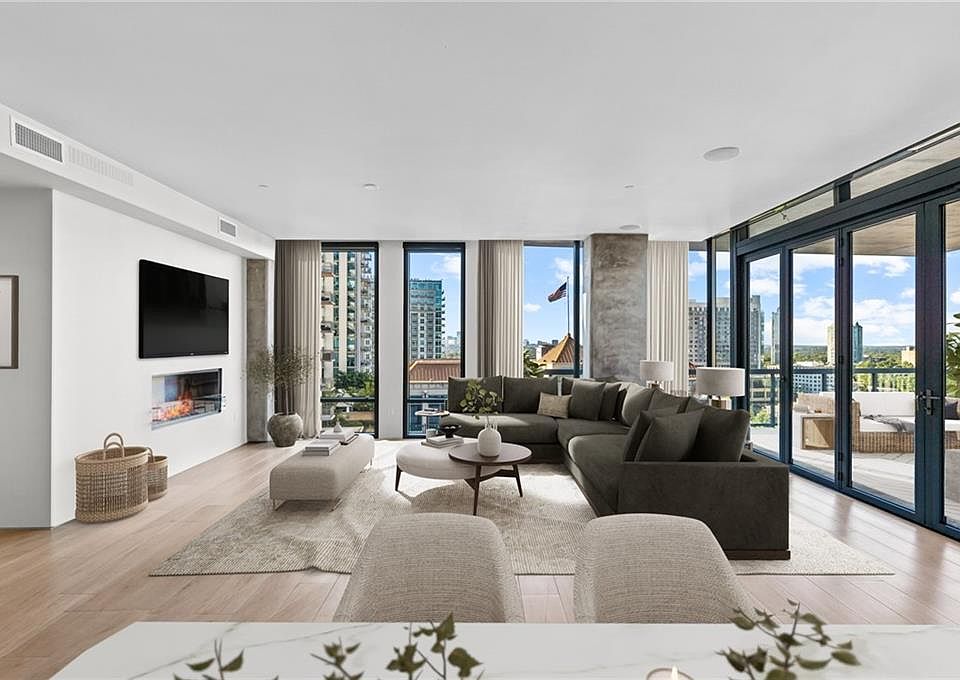 Attention to detail and design and superior, hand selected finishes distinguish this 2 Bedroom + Den from other homes, making it exceptional, offering comfort and luxury at every turn. As you step through the door, light fills the home, extending to the generous foyer where there is ample space for daily arrival and greeting guests. Designed to be striking and functional, the custom kitchen and adjacent bar are dressed in custom cabinetry with contrasting natural wood, crisp white and deep oxidized metallic finishes and is filled with premium appliances and fixtures including a Gaggenau oven, steam oven, vacuum sealer and warming drawer, ice maker, coffee/espresso machine, beverage refrigerator and wine towner. The heart of the home is lined with walls of windows that draw light into the sprawling living and dining spaces while a folding NanaWall opens to a generous terrace with a built-in grill, melding the outdoors and indoors. This collective design of the living spaces makes everyday living and entertaining effortless. The primary suite offers a substantial bedroom and spa bath with a one-of-a-kind, singe piece, double vanity and zero edge shower adorned in hand selected, superior fixtures, substantial, large format tiles, and full slabs of travertine. The walk-in closet complete with enclosed cabinetry, compartments for shoes and bags and, has a custom, built-in dressing table. A light filled secondary suite offers a large bedroom and bath with a generous shower and walk-in closet with built in cabinetry. The home includes a large storage unit, a two-car garage and a third parking space. Buckhead is literally at your feet at The Charles. You never need to get in your car, the best restaurants and shopping Atlanta has to offer are just a block or two away. Amenities include fitness center, residents clubroom, pool, dog park, separate dog wash, bike storage, 24-hour concierge, package, and delivery service and for nominal additional fees, a maintenance program to handle daily maintenance, a guest suite, dry cleaning, and car wash making this home and community the perfect place to call home. The common areas are currently undergoing updates with design by Michael Habachy and new artwork by Joseph Guay. Valet extension has been completed and is ready for residents to enjoy – call the front desk from your home and have your car ready to go by the time you are downstairs.