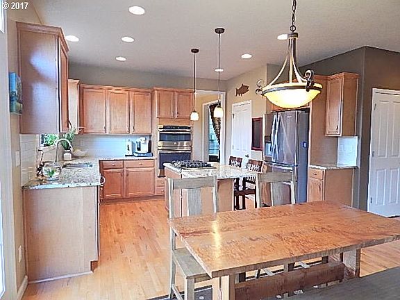 $20k Price Drop! Backs to Greenspace! Beautiful island bar kitchen recently updated w/new high-end Stainless dbl convection oven, dishwasher, new granite counters/subway tile back sp. Large family rm w/gas fireplace. Office. Vaulted Master! Hardwoods in entry, kit, dining, 17x36 bonus rm! Storage area's! O'size garage w/shop area! Huge bonus room! Possible 2 family living. 2 decks, fenced yard. New add'l A/C unit added for the upstairs.