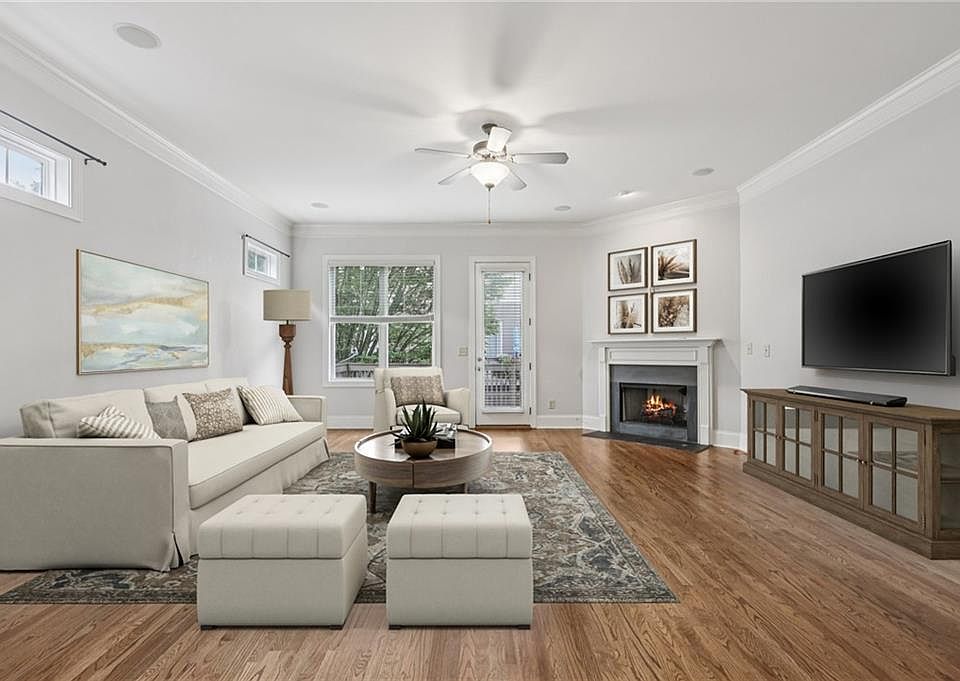 ** 6 MONTHS OF HOA DUES PAID BY SELLER** FREE ONE YEAR RATE BUYDOWN with preferred lender!! **Enjoy easy living in this GATED COMMUNITY just minutes from Downtown Decatur! This cheerful END-UNIT townhome features a bright, open floorplan with plenty of natural light and stylish finishes including a COZY FIREPLACE. The dining nook includes beautiful built-ins that add charm and extra storage, while the upstairs, hallway offers additional built-ins for convenience and display. The spacious primary suite provides a relaxing retreat with a private balcony and spa-like bath. The lower level adds flexible space for a guest room, home office, or extra hangout area. With multiple outdoor spots to unwind, a community pool, and close access to shops, restaurants, and highways—you’ll love the comfort and convenience of this home.