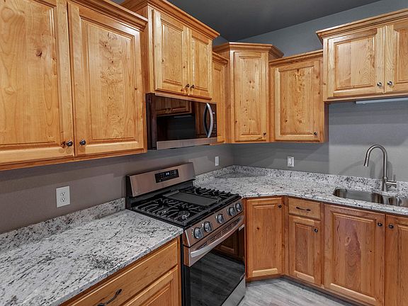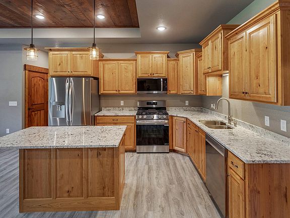 Must see this beautiful high end new construction built by Traut Homes. Home situated on a wooded lot with black top driveway. This open floor plan has 4 bedrooms, 2 bathrooms and everything on one level. The spacious owner's suite gives you much privacy being separated from rest of home.. Owner suite features double handmade white pine custom closet doors, pine tray ceiling, private bathroom with double sinks, gorgeous tile work in the lighted shower. More home features include granite counter tops, cherry wood kitchen cabinets, a stunning stone gas fireplace in the corner with a wood block mantle, custom woodwork/doors thru out, recess lighting, central air, breakfast bar, a walk-in front entry closet, covered back yard patio, natural gas, a finished heated/insulated 3 car garage with floor drain and so much more. You will love everything about this home!! Some photo's of a similar home