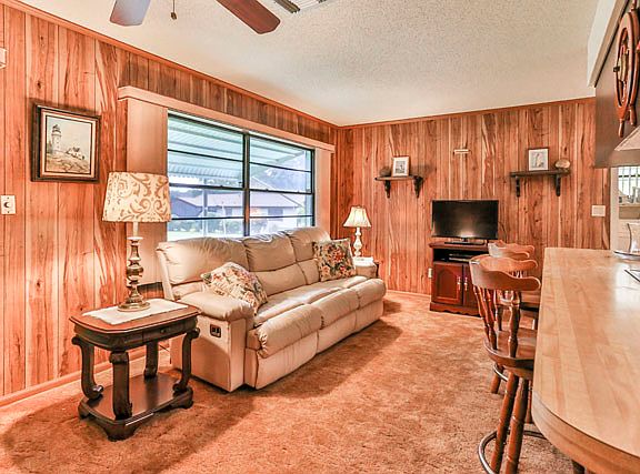 Super Adorable, 2 bedroom, 2 bath ranch with a 1 car garage on a corner, over sized lot. Perfect for retirement or 1st time home buyer. Original owner, move in ready with a golf course view out the front door. It features a master suite, living room/dining room, family room, good sized kitchen, sunroom, laundry room, and a large, walk-in utility/pantry. New roof (2013) and newer air conditioner/heating system (under warranty). Washer, dryer, stove, refrigerator, dishwasher, and microwave included. Attic access in garage, garage has retractable screen enclosure. Screened front porch and in ground sprinklers. Don''t wait this is a must see!