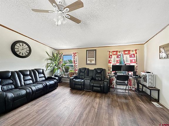 Fabulous 1991 Home on Expansive Lot with Boundless Potential! Nestled in the charming enclave of Lazear, just outside the vibrant community of Hotchkiss, this exquisite three-bedroom, two-bathroom manufactured home is a tranquil haven set on a sprawling half-acre lot. With a blend of elegance and modern convenience, this property is a rare gem brimming with untapped potential. Meticulously remodeled primary bathroom, alongside the chicly renovated kitchen and guest bathroom. The home boasts a new roof installed in 2022, offering both style and security for discerning buyers. A generously sized laundry area and an expansive yard—enhanced by a Lazear water tap that provides access to a remarkable 30,000 gallons of water per month—invite endless possibilities for outdoor leisure and landscaping. Recent enhancements elevate this property to a new level, including a fresh exterior paint job, evaporative cooler, and an on-demand tankless hot water heater, all installed in 2022. A new furnace, installed in 2020, and updated appliances from the same year, ensure that every aspect of this home is as modern as it is magnificent. The addition of a wooden privacy fence surrounding the entire property adds an extra layer of exclusivity and seclusion. Located in the highly desirable Hotchkiss area within the picturesque North Fork Valley of Western Colorado, this residence offers breathtaking panoramic views of the majestic West Elk Range of the Colorado Rocky Mountains and the serene Grandview Mesa. With ample room for a large garden or greenhouse, this property is a paradise for horticultural enthusiasts, offering the ideal climate for cultivating your own vegetables or fruits. The home's spacious kitchen, replete with abundant cabinetry, and the sizeable mudroom/laundry area add to the practicality and convenience of everyday living. Whether you seek a peaceful retreat or a vibrant gardening haven, this property provides the space, amenities, and water access to create the oasis of your dreams in the heart of Colorado's stunning landscape.