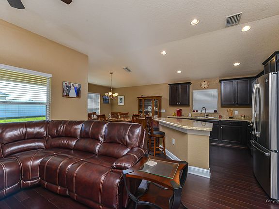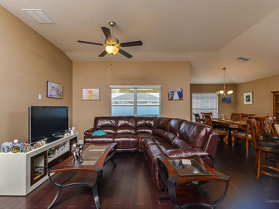 Looking for that forever home? Look no further! This home is nestled in the golf community Sherman Hills. Just minutes from I-75 with easy access to Tampa. Great neutral tones inside and beautiful dark bamboo flooring flows all throughout. A nice open living area that is great for entertaining. The kitchen overlooks the living and dining room area and holds wood cabinets, smooth countertops, a breakfast bar, recessed lighting, a closet pantry, and stainless-steel appliances. Tall ceilings open up the home and the plant shelving really give the home some character. The guest bedrooms hold ceiling fans above for added comfort and have French door closets. The guest bath is located between the two guest bedrooms for convenience and holds beautiful tile floors. A soaring ceiling in the nice sized master bedroom. The master bath has dual sinks, a relaxing garden tub, a walk-in shower, and large walk-in closet. A comfortable covered porch area in the back, a great spot to barbeque. All of this overlooks the private fenced in yard great for pets and children to roam freely. The home sits on a corner lot for a little more added space. A terrific spot to call home! Come view today.