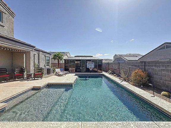 Premium Corner lot with incredible backyard to entertain humans or dogs. The dogs love this pebble tec pool. And so will you. 20 Foot ceilings in the great room. Open floor plan with formal dining area connected to the large kitchen with island and walk in pantry. Stainless steel appliances and granite counter tops. Primary bedroom is located on the first floor as well as the laundry room and another bedroom/office. The primary closet is large enough to get lost in. You will definitely be buying more shoes. Upstairs is a very large loft. TV watching, gaming, homework, work desk space. Endless possibilities. And more bedrooms. Did I mention 3 car garage? This D R Horton home includes in wall pest control and highly efficient insulation for more efficient electric costs. A MUST see today!