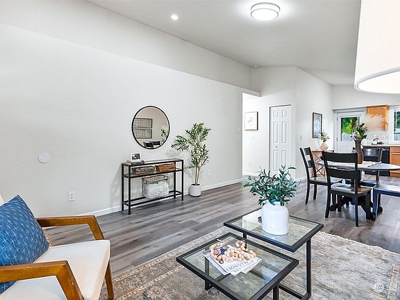 Charming, rambler nestled in an established neighborhood! This two bedroom, one bath home offers the perfect blend of comfort & convenience. As you pull up, notice the brand new exterior paint & updated roof. Step inside to discover vaulted ceiling, updated doors & trim, LVP flooring, stainless appliances, updated bathroom & freshly painted walls. The open, sun-filled living space gives you plenty of room & light. Enjoy a fenced, flat backyard bordering a neighborhood park. Dedicated laundry room. Covered front porch. With an attached two car garage, there is ample parking inside & out. This home is truly move-in ready. Convenient location puts you moments away from major shopping & easy access to I-5 for a great commute. Welcome Home!