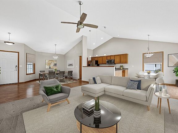 - Kitchen/Dining Combo, Bath in Primary Bedroom, Main Level Primary, Vaulted Ceiling(s)