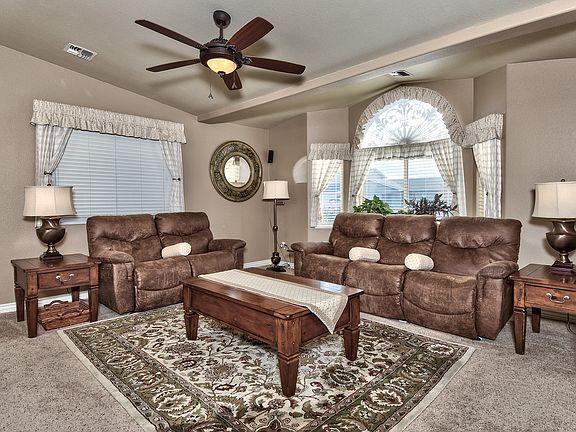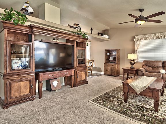 Situated in the established neighborhood of Summit View Ranch, this three bedroom two bathroom home offers a recent total remodel featuring stunning upgrades and masterful detailing. Natural stonework, concrete curbing, and mature landscaping highlight the front of the home with its oversized two-car garage and private RV parking. Inside, new paint and Mohawk carpeting grace the spacious living room where a comfortable sitting area rests in front of the sizable bay window. Distinguished plant shelving, vaulted ceilings, and a gas fireplace make for an impressive space. A desirable open-concept design creates flow in the home, and gorgeous ceramic tile with wood grain accents expand throughout the dining room and kitchen. Access to the outdoor living space further connects to the dining room, and granite countertops and a granite sink combine with dark-stained cabinetry and stainless steel appliances to create modern elegance. The master bedroom is highlighted by crown molding and an en-suite with a new frosted-glass door shower and framed vanity mirror. Two additional bedrooms are served by a main bathroom with its attractive under mount sink. The amount of usable space in the backyard is remarkable from the storage shed to the 12x18 detached workshop with overhanging door offering heating, cooling, and both 110 and 220 wiring. Privacy fencing along with mature shade trees frame the flagstone patio and pergola where afternoon shade makes for a relaxing entertainment space.