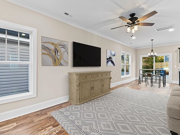 Fantastic new construction just a short distance to downtown Durham. This 3 BR, 2.5-bathroom home boasts soaring 9-foot ceilings, hardwoods, and beautiful craftsman-style interior trim throughout both 1st and 2nd floors. Fantastic kitchen with island, granite, and stainless-steel appliances. Open first floor plan with easy access to large deck is great for families and entertaining. Tile baths. Master has walk-in closet, dual vanities, and walk- in shower with bench. All electric, low-e windows, and dual zoned HVAC. Neighborhood has several high-end new construction homes and a 17-acre city park with playground, fields, courts and tons of natural space. Rare location that is minutes from downtown but also with easy access to Bier Creek and Raleigh.