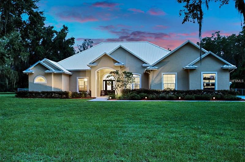 This one of a kind, custom built home is situated on a full 1 acre lot, boasting over 3100 square feet under air, including 3 bedrooms, an oversize office space that could be used as a 4th bedroom, 3 full bathrooms and a half bath in the spacious second living area. Right as you walk in the foyer this home showcases an open concept, including the formal dining area, gourmet kitchen with custom cabinetry, huge island with seating and marble counter tops, coffered ceilings and a captivating living area, which all boast new hardwood floors with custom baseboards!! The master suite is simply luxurious, with a seating area overlooking the back porch, a spa like master bath with submerged tub, rainfall shower with seamless glass enclosure , dual vanity with solid stone counters and a huge walk in closet! there is also a speaker system (whole house including master bath) with controls throughout the home which can have you enjoying music on the back porch while the house is quiet!! The home has a brand new seamless metal roof, tank-less gas water heater, surround sound in both living rooms, security camera throughout, a generator hookup for emergencies, 2 separate wells, full wet bar in the second living area/game room, brand new electronic fireplace and an extended back porch with fire pit area for entertaining, this truly is a remarkable home, DO NOT miss your opportunity to own it!!