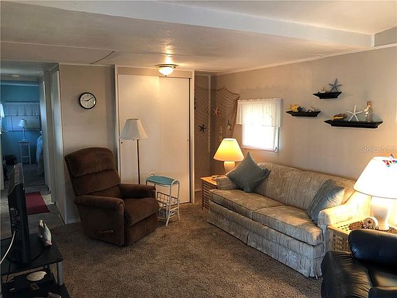 Adorable 1BR/1BA in popular 55+ community -- Terra Siesta. Has a beachy, cottage feel to it. New rubber roof over with LIFETIME WARRANTY installed in Dec 2019. Home is being sold turnkey furnished. Bring your clothes and settle into the Florida lifestyle. Very active community with center, shuffleboard, and community pool. There is a carport with room for one car and driveway for tandem parking another car. This listing includes the washer and dryer in the storage room. Terra Siesta is centrally located close to shopping, major highways and a short drive to the beach.