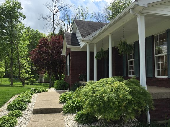 Kentucky Acres Subdivision: Charming 14 year old custom brick walk-out ranch on 1.53 acres in the center of a quiet, park like cul-de-sac, this home boasts gorgeous solid oak hardwood floors (2010), fresh paint throughout most every room, including the finished basement, and updated fixtures/kitchen and bath hardware. Kitchen has a beautiful stone custom backsplash. Newer hot water heater (2014) and air conditioning unit (2008), along with a stunning 2 tiered deck, that connects with a 24 foot above ground pool/deck (2012) perfect for all your summer fun and entertaining. The private, treed backyard is simply perfect for entertaining and pool time fun. You won't even need to go inside to enjoy watch a show, as the bottom deck boasts an outdoor TV (mounting/arm stays). The living room has a beautiful vaulted ceiling, gas fireplace, and a custom shelf built for your plasma television. There are updated ceiling fans in just about every room. The master bedroom has a tray ceiling, a large walk in closet, and offers a second closet as well. The master bath offers ceramic tile and garden tub, along with atrium door access to the 2 tiered deck. The full finished basement (less storage/laundry room) shows a 4th bedroom and 3rd full bath, perfect for a teen or in-law. The basement soars with 9 foot ceilings giving lots of space. This one-owner home has upgraded insulation throughout. This home also has built in surround sound wiring in both the upstairs living room and downstairs family room. This well maintained home is in move in condition and also has a storage shed. A 50 inch-cut Dixie Chopper riding mower (2012) is negotiable as well; only 120 hours of use and all maintenance records kept. Kitchen appliances to remain. Home comes with proactive, preventative pest control paid for the remainder of the year. The pool has already professionally been opened for the season, hurry to enjoy your summer here.