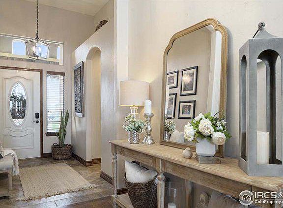 Stunning ranch located in the highly desired Serenity Ridge. The name speaks for itself! Gorgeous city views and amazing sunsets over the mountains. In heart of Northern Colorado with quick and easy access to I-25 makes this location even more ideal. This property is a entertainers dream! Outdoor kitchen on a huge trex deck , built in grill, smoker, covered by a lighted pergola, fire pit, and 2 water features taking you away in your own paradise. When you're not enjoying your back yard this well designed floor plan won't disappoint. Every room is filled with so much of it's own design character. Open floor plan, vaulted ceilings, huge kitchen island, double ovens, master suite, all rooms with large walk in closets. The lower level is also an entertainer's dream with a second kitchen and room for all your favorite games plus a gym and craft room or anything you want. 4 car garage and large driveway are perfect for all your toys. To many fantastic features to list. Welcome home!
